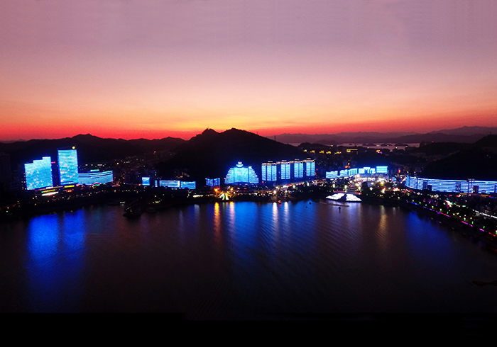獲得“優秀智能照明控制”獎的勇電集中控制系統,可以通過專業的數據分配服務器和組建高速網絡,對海量數據進行分組、高速傳輸和分發,無需預先處理,即可實時播放視頻源,一鍵控制建筑群夜景燈光展現,勇電千島湖城中湖區域樓體聯動等項目皆有運用。