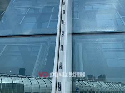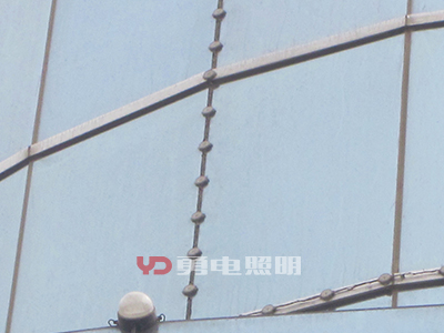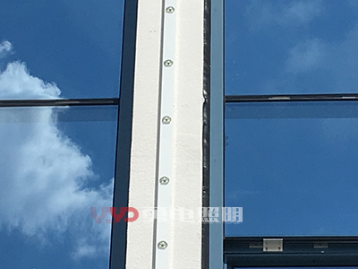 2、幕墻內透安裝:有些幕墻玻璃顏色不深、透明性好,可以考慮將光源安裝在幕墻的內側,這種方式不會對幕墻造成任何外觀上的變化,白天隱形效果好;幕墻內側安裝,可以用拉鋼絲繩的方式,二次封裝LED點光源設計有鋼絲卡扣,拉好鋼絲直接定好位置扣上去即可,方便快捷,不影響采光。