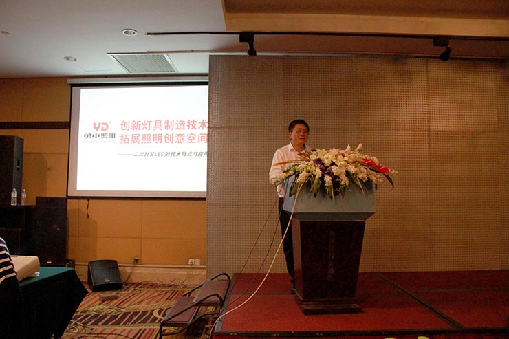 杭州勇電照明有限公司總經理徐松炎向廣大照明設計師專家朋友們作出《創新燈具制造技術拓展照明創意空間》——二次封裝LED的技術特點與應用的學術報告,向廣大照明設計師及專家詳細匯報了勇電二次封裝LED的研發過程和理論依據、技術的創新點與產品的優良性能。展示了國內經典工程案例,和國外一些設計作品。勇電照明公司高級照明設計師徐小榮為大家詳細的解讀了經典工程的設計及案例分析,項目的設計、施工細節、材料選擇及安裝等問題,深刻剖析燈具質量與最終使用效果的關系,將此次會議的氣氛推向了高潮。