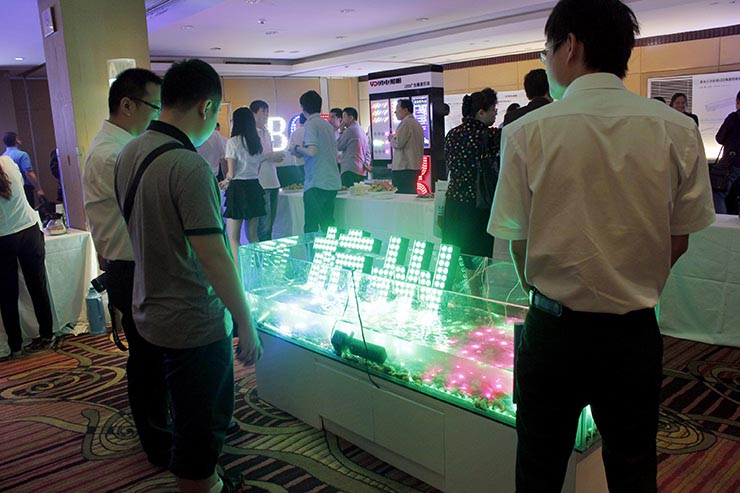 在會場的外圍場館,勇電照明有限公司將二次封裝產品做了一一展示,由二次封裝LED點光源組成的巨大顯示屏可隨時播放會議的主題、動畫等,浸入水中的LED光源更加吸引設計師們的眼光,同時展出的還有絢麗多彩的LED球泡燈、用于體現輪廓的線條燈、投光燈等等,新產品橋梁專用燈則讓大家連連驚嘆,一體化的結構模式能夠同時實現兩種不同的照明效果,以實現不同的表現需求。勇電二次封裝LED產品讓設計師朋友將他們的藝術創意得到充分地實現,同時,產品的開發應用也得到了設計師朋友們的高度贊揚。