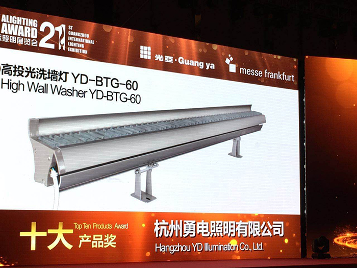 此外,在6月9日晚舉行的第四屆阿拉丁神燈獎評選活動中,勇電照明LED高投光洗墻燈及大功率LED光源模塊分別獲得阿拉丁十大產品獎及十大技術獎兩項殊榮。